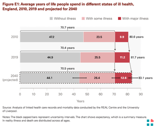 - The Health Foundation. REAL Centre. Health in 2040: Projected patterns of illness in England. July 2023 https://www.health.org.uk/sites/default/files/upload/publications/2023/Projected%20patterns%20of%20illness%20in%20England_WEB.pdf
